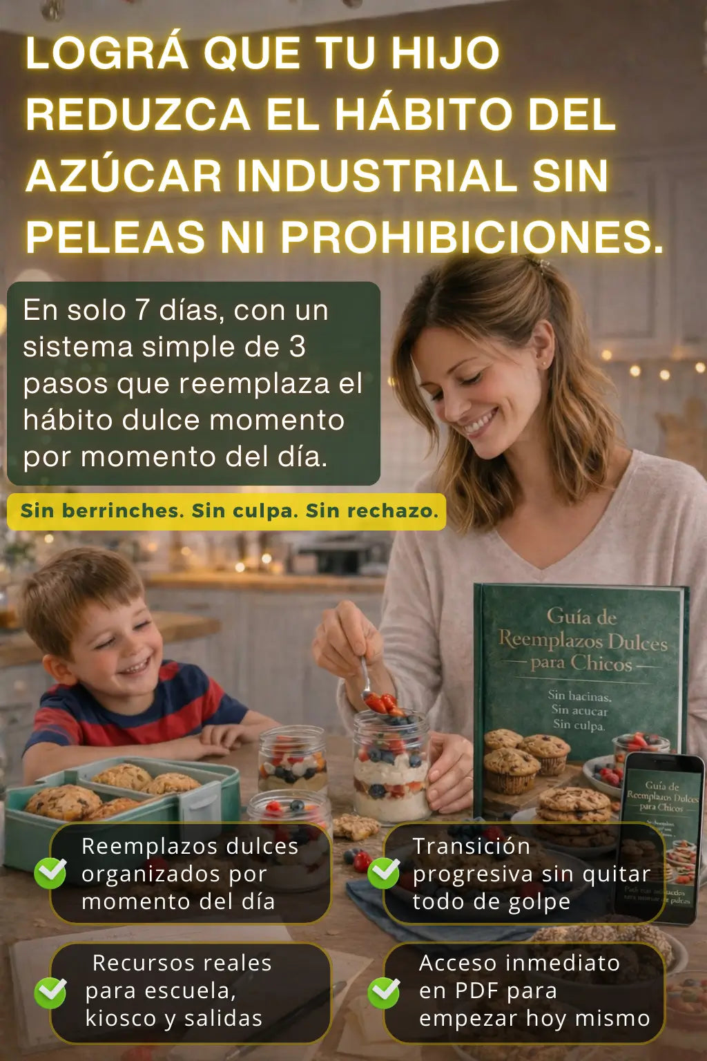 Respuestas claras para mamás (y familias) reales. Sin vueltas: esto es lo que necesitás saber antes de llevarte la Guía de Reemplazos Dulces para Chicos + 6 bonus.